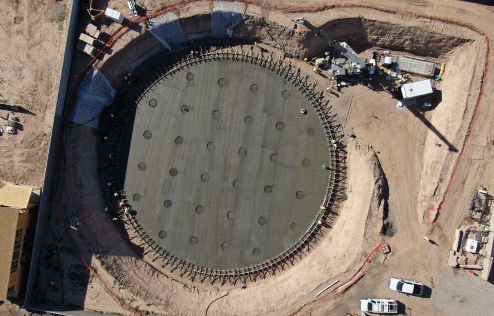 As part of our on-call contract with the Town of Queen Creek, our team was selected to design and construct a partially buried, pre-stressed 2.0 MG concrete water storage tank, a vertical turbine booster pump station, associated electrical controls, and equipment.