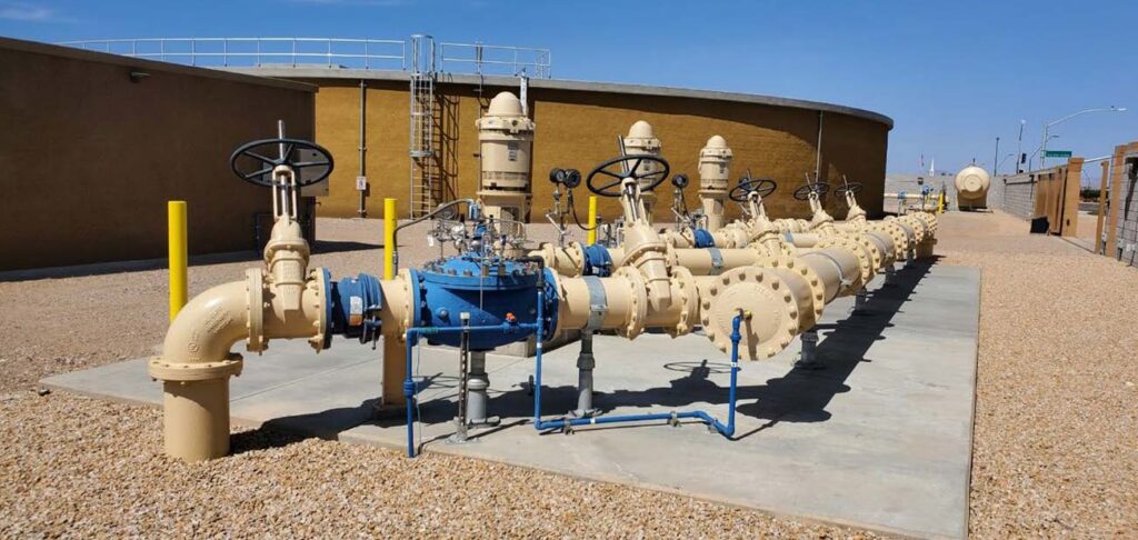 As part of an on-call contract with the Town of Queen Creek, a new storage tank and booster pump station were developed on Meridian Road to improve water system operations and service reliability.